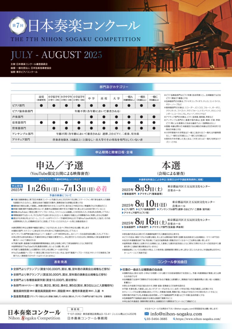 ※申込後の本選曲目・演奏時間の変更は、各審査日の1週間前までにメールにて連絡のこと
