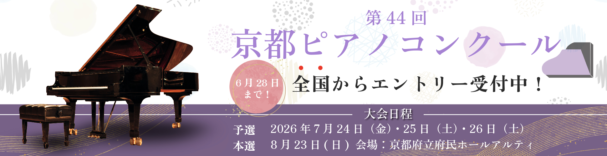 2024年10月21日締切カテゴリ コンクール 楽器 ピアノ(鍵盤)、声楽 対象年齢 12歳〜15歳(中学生)、15歳〜18歳(高校生)、18歳〜22歳(大学・専門・一般)、23歳〜30歳、31歳〜40歳、41歳〜 開催地域 大阪府 その他 -
